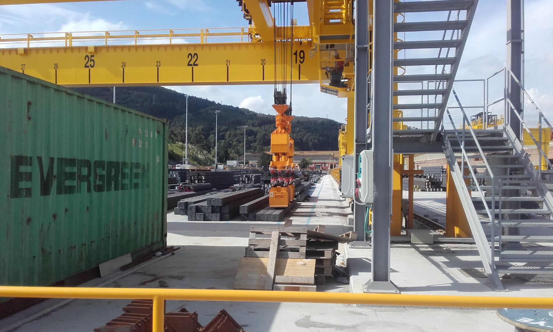 Cada una de estas instalaciones está compuesta por una viga telescópica con apertura y cierre mecánicos a través de los dos carros de la grúa, con dos balancines y dos electroimanes especiales bipolares dobles tipo FBD por balancín.