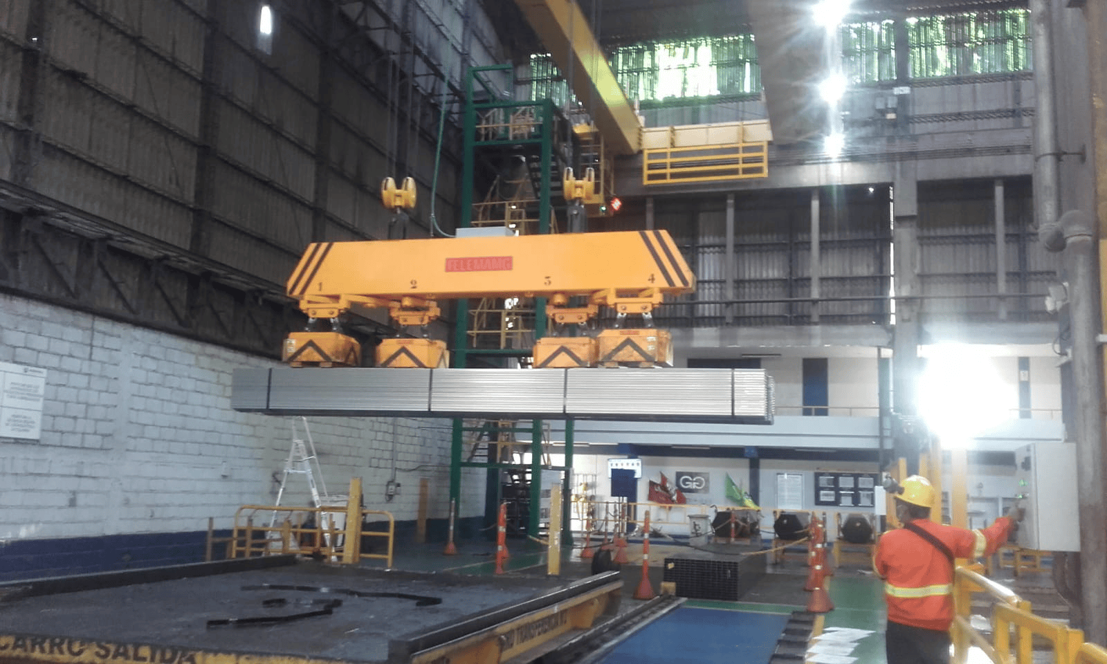 El año pasado ha sido instalada y puesta en marcha en Perú, una versátil instalación electromagnética  de elevación, que ha sido diseñada para el manejo de paquetes de tubos flejados.